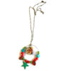 Le pendentif est suspendus à l’intérieur d’un grand anneau en laiton couleur argent ornés de perles bleue, verte et rouge en céramique ainsi que d’une grande pampille en forme d’étoile émaillée.