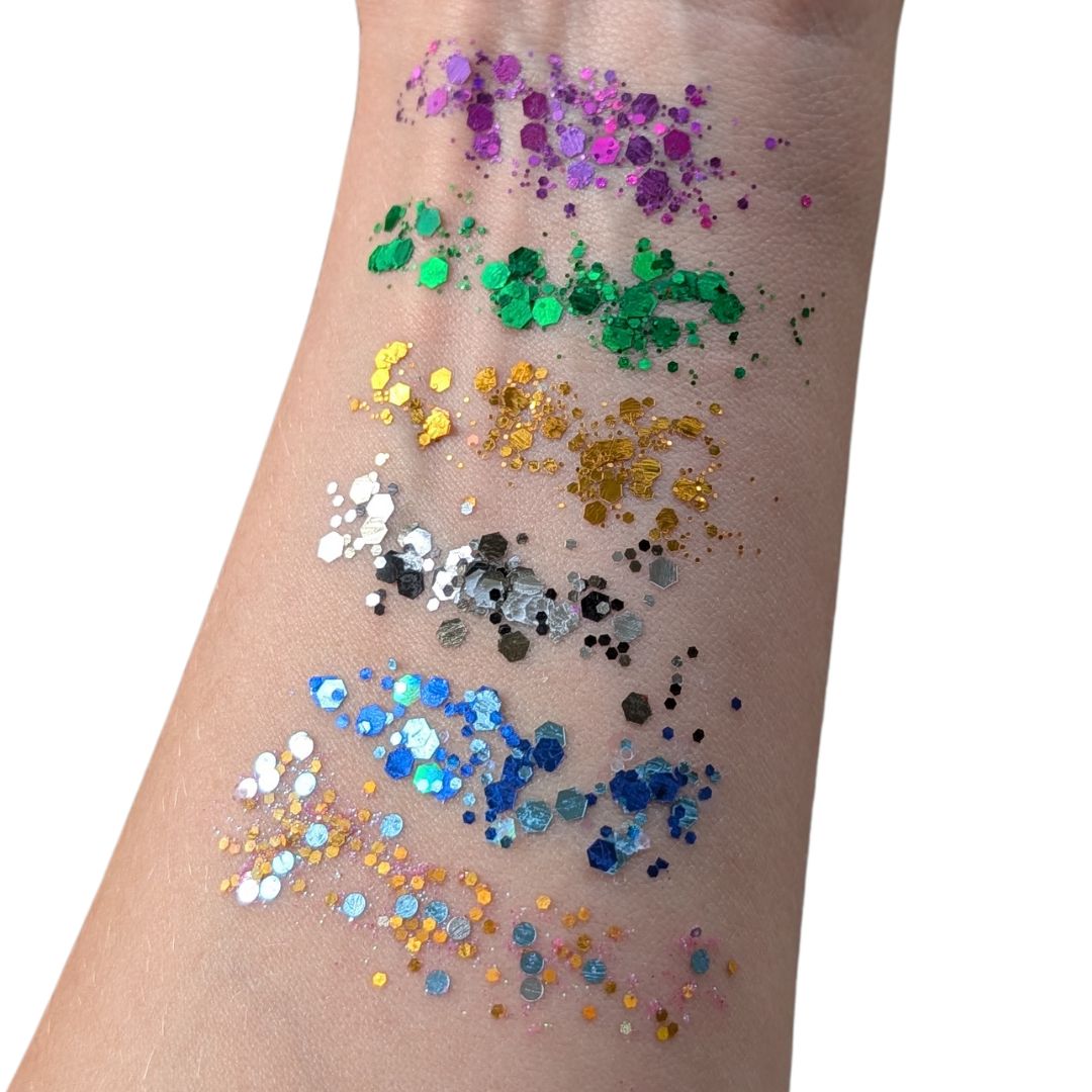 - Des paillettes chunky, mélanges de différentes tailles de paillettes pour un rendu canon.