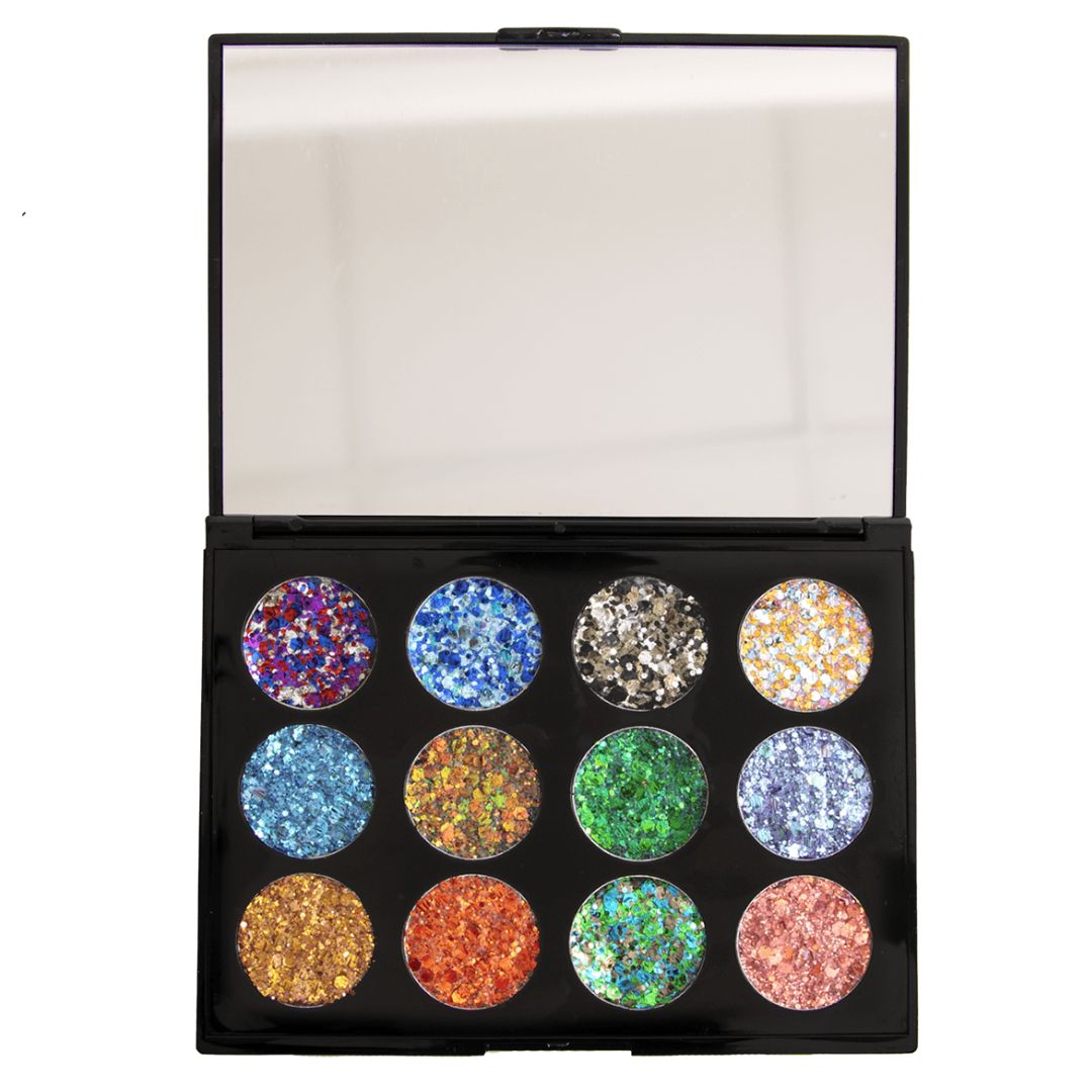 Chaque palette contient 12 couleurs de paillettes de 1,5gr